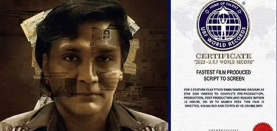 സ്ക്രിപ്റ്റ് ടു സ്ക്രീന് കാറ്റഗറിയില് വെറും 16 മണിക്കൂര് കൊണ്ട് പൂര്ത്തീകരിച്ച ‘ എന്ന് സാക്ഷാല് ദൈവം’ എന്ന സിനിമക്ക് ലോകറെക്കോര്ഡ്. പ്രീപ്രൊഡക്ഷന്, പ്രൊഡക്ഷന്, പോസ്റ്റ് പ്രൊഡക്ഷന് ജോലികള് പൂര്ത്തിയാക്കി ഒടിടി പ്ളാറ്റ്ഫോമുകളില് റിലീസ് ചെയ്തതിലൂടെയാണ് സിനിമ ശ്രദ്ധ നേടിയത്.