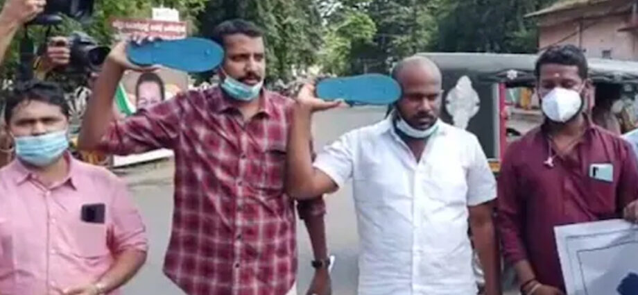 പാലക്കാട്: എസ്ഐയെക്കൊണ്ട് സുരേഷ് ഗോപി എംപി നിർബന്ധിപ്പിച്ച് സല്യൂട്ട് അടിപ്പിച്ച സംഭവത്തിൽ പ്രതിഷേധം സംഘടിപ്പിച്ച് യൂത്ത് കോൺഗ്രസ്. സുരേഷ് ഗോപിയുടെ നിലപാടിനെ പരിഹസിച്ചാണ് യൂത്ത് കോൺഗ്രസ് പ്രതിഷേധം സംഘടിപ്പിച്ചത്. സുരേഷ് ഗോപിയെ ചെരിപ്പുകൊണ്ട് സല്യൂട്ട് ചെയ്തായിരുന്നു യൂത്ത് കോൺഗ്രസിന്റെ പ്രതിഷേധം. യൂത്ത് കോൺഗ്രസ് പാലക്കാട് നിയോജകമണ്ഡലം കമ്മിറ്റിയുടെ നേതൃത്വത്തിലാണ് പ്രതിഷേധം സംഘടിപ്പിച്ചത്.
