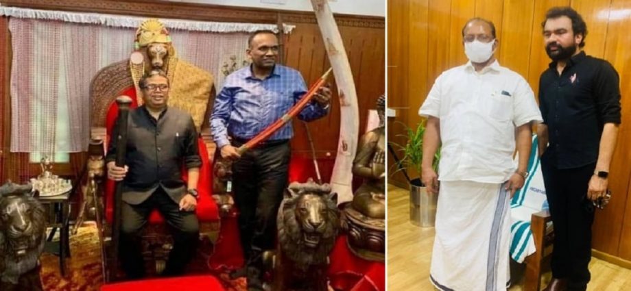 മോന്സണ് മാവുങ്കലിന്റെ പുരാവസ്തു ശേഖരത്തിലിരിക്കുന്ന സിംഹാസനത്തില് ഇരിക്കുന്ന ലോക്നാഥ് ബെഹ്റ, തൊട്ടടുത്ത് വാളുമായി നില്ക്കുന്ന എഡിജിപി മനോജ് എബ്രഹാം തുടങ്ങിയ ഉന്നത ഉദ്യോഗസ്ഥരുടേയും ചിത്രങ്ങളും ഇപ്പോള് പുറത്തു വന്നിട്ടുണ്ട്. കെപിസിസി അധ്യക്ഷന് കെ സുധാകരനുമായുള്ള ചിത്രങ്ങള് പുറത്തു വന്നതോടെയാണ് മോന്സണ്ന്റെ മറ്റു രാഷ്ട്രീയ ബന്ധങ്ങളും ഉദ്യോഗസ്ഥരുമായുള്ള ബന്ധങ്ങളും ഇപ്പോള് ചര്ച്ചയാകുന്നത്. കെ സുധാകരനുമായി മോന്സണ് അടുത്ത ബന്ധമുണ്ടെന്നും സുധാകരനെ ചുകിത്സിച്ചത് മോന്സണായിരുന്നു എന്നായിരുന്നു പരാതിക്കാരനായ ഷെമീര് പറയുന്നത്.
