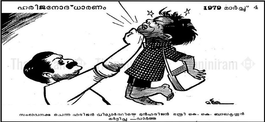 ഹരിജനോദ്ധാരണം ജി. ശേഖരന് നായര്: : കാലത്തിനു മുമ്പേ കടന്നു പോയ കാർട്ടൂണുകൾ സംഭാവനയ്ക്ക് ചെന്ന ഹരിജൻ വിദ്യാർത്ഥിയെ മുൻ ഹരിജൻ മന്ത്രി K K ബാലകൃഷ്ണൻ മർദ്ദിച്ചു : വാർത്ത 1979 മാര്ച്ച് 4 ജി. ശേഖരന് നായര് 2021-12-28