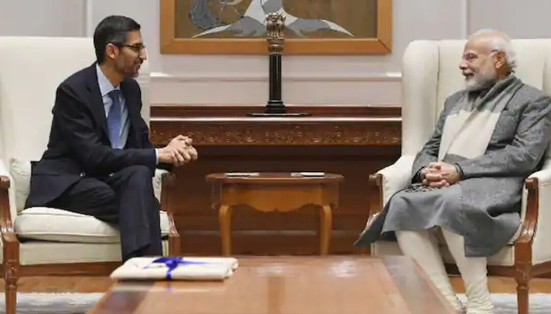 നരേന്ദ്രമോദിയുമായി കൂടിക്കാഴ്ച നടത്തി ഗൂഗിൾ സിഇഒ; സാങ്കേതികവിദ്യ ഉൾപ്പെടെയുള്ള വിഷയങ്ങൾ ചർച്ച ചെയ്തു