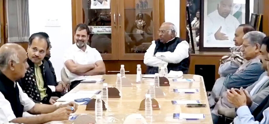 കോൺഗ്രസ്, ഡിഎംകെ, സമാജ്വാദി പാർട്ടി, ആർഡെജി, മുസ്ലിം ലീഗം, ആർഎസ്പി. ജെഎംഎം, വിസികെ, ജെഡിയു, കേരള കോൺഗ്രസ്(എം), എഎപി, ആർഎൽഡി, എംഡിഎംകെ തുടങ്ങിയ പാർട്ടികളുടെ പ്രതിനിധികൾ ഇന്ന് ചേർന്ന യോഗത്തിൽ പങ്കെടുത്തു. അതേസമയം, തൃണമൂൽ കോൺഗ്രസ്, ശിവസേന ഉദ്ധവ് താക്കറെ വിഭാഗം പ്രതിനിധികൾ യോഗത്തിൽ പങ്കെടുത്തിരുന്നില്ല. രാഹുൽ ഗാന്ധിയുടെയും ഖർഗെയുടെയും അധ്യക്ഷതയിലാണ് യോഗം ചേർന്നത്.