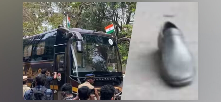 കഴിഞ്ഞ ദിവസമാണ് നവകേരള ബസിന് നേരെ കെഎസ്യു പ്രവർത്തകർ ഷൂസ് എറിഞ്ഞത്. പെരുമ്പാവൂരിലെ നവകേരള സദസിന്റെ യോഗം കഴിഞ്ഞ മുഖ്യമന്ത്രിയും മന്ത്രിമാരും കോതമംഗലത്തേക്ക് പോകുമ്പോൾ ഓടക്കാലിയിൽ വെച്ചായിരുന്നു സംഭവം നടന്നത്. സംഭവവുമായി ബന്ധപ്പെട്ട് നാല് കെഎസ്യു പ്രവർത്തകരെ പൊലീസ് കസ്റ്റഡിയിലെടുത്തു.