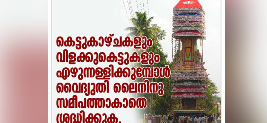 ക്ഷേത്രങ്ങളിൽ ഉത്സവം നടക്കുന്ന കാലമാണിത്. കെട്ടുകാഴ്ചകളും വിളക്കുകെട്ടുകളും എഴുന്നള്ളിക്കുമ്പോൾ ശ്രദ്ധിക്കേണ്ട കാര്യങ്ങളെ കുറിച്ച് മുന്നറിയിപ്പ് നൽകിയിരിക്കുകയാണ് കെഎസ്ഇബി. കെട്ടുകാഴ്ച്ചകളും വിളക്കുകെട്ടുകളും എഴുന്നള്ളിക്കുമ്പോൾ വൈദ്യുതി ലൈനിനു സമീപത്താകാതെ ശ്രദ്ധിക്കണമെന്നാണ് കെഎസ്ഇബി വ്യക്തമാക്കുന്നത്. ഫേസ്ബുക്കിൽ പങ്കുവെച്ച കുറിപ്പിലൂടെയാണ് കെഎസ്ഇബി ഇക്കാര്യം അറിയിച്ചത്.