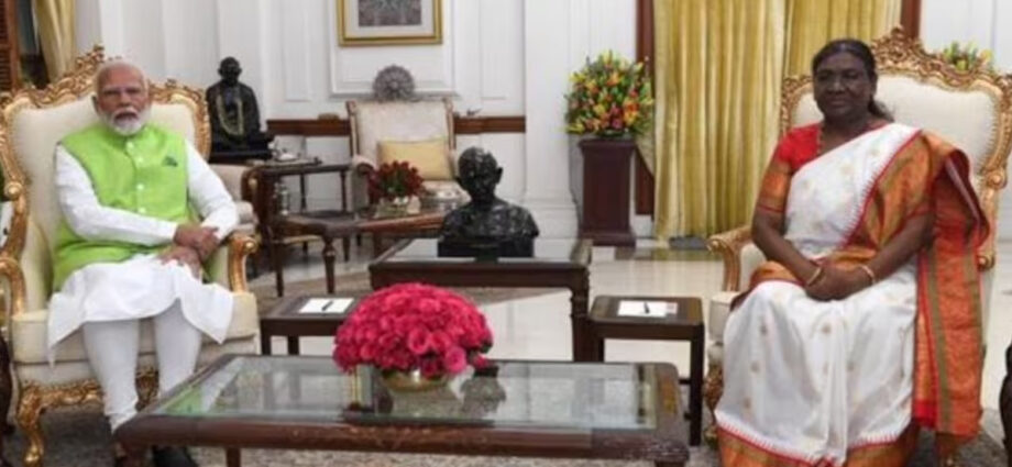 ന്യൂഡൽഹി: രാഷ്ട്രപതി ദ്രൗപദി മുർമുവിന് രാജിക്കത്ത് നൽകി പ്രധാനമന്ത്രി നരേന്ദ്ര മോദി. ലോക്സഭാ തെരഞ്ഞെടുപ്പ് ഫലപ്രഖ്യാപനത്തിന് പിന്നാലെയാണ് അദ്ദേഹം രാഷ്ട്രപതിയ്ക്ക് രാജി സമർപ്പിച്ചത്. പ്രധാനമന്ത്രിയുടെ രാജി രാഷ്ട്രപതി സ്വീകരിച്ചു. പിന്നീട് കാവൽ മന്ത്രിസഭ തുടരാൻ രാഷ്ട്രപതി നിർദ്ദേശം നൽകി.