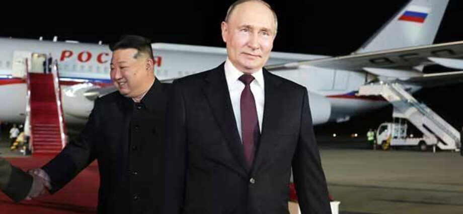പ്യോംഗ്യാംഗ്: ഉത്തരകൊറിയയിൽ സന്ദർശനത്തിനെത്തി റഷ്യൻ പ്രസിഡന്റ് വ്ളാഡിമിർ പുടിൻ. 24 വർഷങ്ങൾക്ക് ശേഷമാണ് റഷ്യൻ പ്രസിഡന്റ് ഉത്തരകൊറിയൻ തലസ്ഥാനമായ പ്യോംഗ്യാംഗിൽ എത്തിയിരിക്കുന്നത്. ഉത്തരകൊറിയൻ പ്രസിഡന്റ് കിം ജോംഗ് ഉൻ അദ്ദേഹത്തെ വിമാനത്താവളത്തിലെത്തി സ്വീകരിച്ചു. കിം ജോഗ് ഉൻ ആലിംഗനത്തോടെയായിരുന്നു റഷ്യൻ പ്രസിഡന്റ് വ്ളാഡിമിർ പുടിന് സ്വീകരണം നൽകിയത്. യുക്രെയിൻ അധിനിവേശത്തിന് പിന്നാലെ അന്താരാഷ്ട്ര തലത്തിൽ റഷ്യ വിലക്കുകൾ നേരിടുന്നുണ്ട്.