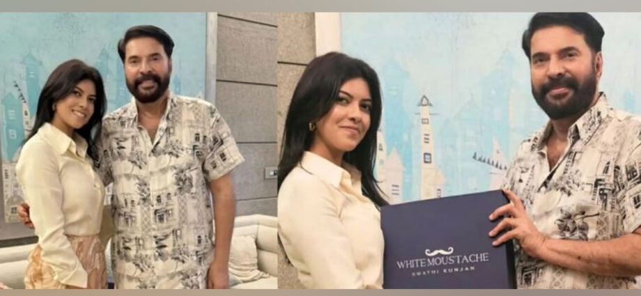 സ്വന്തം വസ്ത്ര ബ്രാൻഡിന്റെ ഷർട്ട് മമ്മൂട്ടിയ്ക്ക് സമ്മാനിച്ച് ഫാഷൻ ഡിസൈനറും നടൻ കുഞ്ചന്റെ മകളുമായ സ്വാതി കുഞ്ചൻ. വൈറ്റ് മസ്റ്റാഷ് എന്ന സ്വന്തം ബ്രാൻഡിന്റെ ഷർട്ടാണ് സ്വാതി മമ്മൂട്ടിക്ക് സമ്മാനിച്ചത്. താരത്തിനൊപ്പമുള്ള ചിത്രം സ്വാതി വൈറ്റ് മസ്റ്റാഷിന്റെ ഔദ്യോഗിക സോഷ്യൽ മീഡിയ പേജിൽ പങ്കുവെച്ചു.