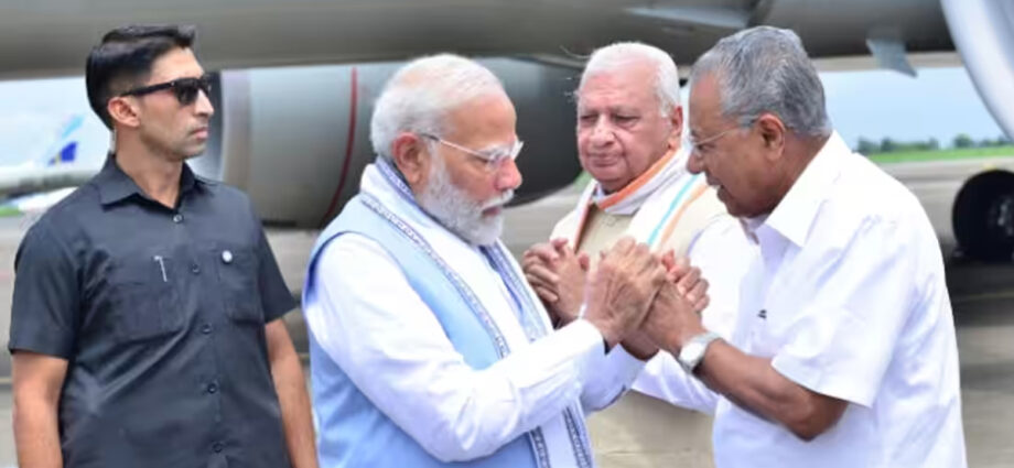 കൽപ്പറ്റ: പ്രധാനമന്ത്രി നരേന്ദ്ര മോദി കേരളത്തിലെത്തി. വയനാട് ദുരന്തമേഖല സന്ദർശിക്കുന്നതിന് വേണ്ടിയാണ് അദ്ദേഹം കേരളത്തിലെത്തിയത്. ഇന്ന് രാവിലെ 11 മണിയോടെയാണ് മോദി കണ്ണൂർ വിമാനത്താവളത്തിലെത്തിയത്. കേരള മുഖ്യമന്ത്രി പിണറായി വിജയൻ, ഗവർണർ ആരിഫ് മുഹമ്മദ് ഖാൻ എന്നിവർ പ്രധാനമന്ത്രിയെ വിമാനത്താവളത്തിൽ സ്വീകരിച്ചു.